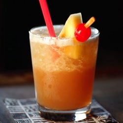 Garnish with an orange slice pineapple wedge or cherry.